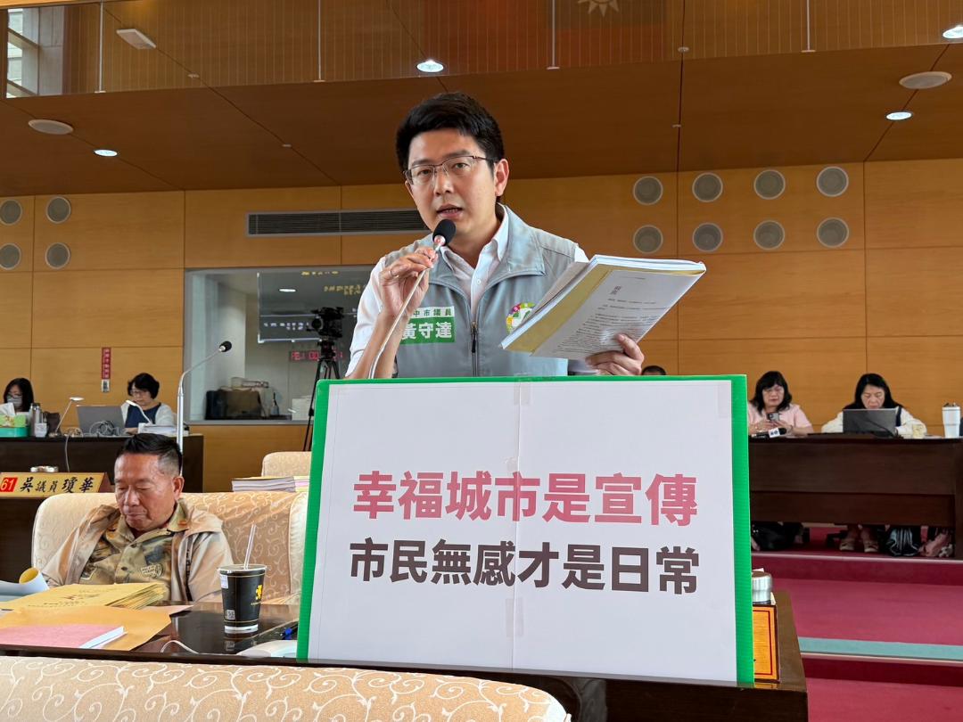黃守達質疑,盧市長對幸福城市這個概念一提再提,念茲在茲,施政報告從前言到架構,都在強調台中是一座「幸福城市」更用所謂「九大幸福方程式」來包裝整體施政。但是當國際評比真的把治理、環境、經濟、健康、交通與市民生活條件攤開來看時,台中的排名卻不升反降,顯然市府的官方敘事跟市民感受存在嚴重的落差。