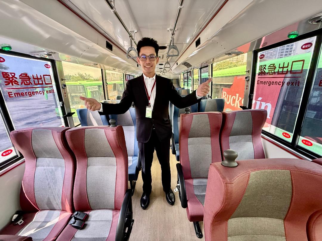 公車駕駛林泳宏對乘客的回饋表示,能為民眾服務自己也很開心,過去曾在台中7期從事社區保全工作逾10年,因對汽車、機械有興趣,早在103年即考取職業大客車駕照,提前準備斜槓計畫,今年在因緣際會下轉換跑道,加入公共運輸行列2個多月,剛開始除了跟車實習,為熟悉路線,下班時間特別騎機車逐站記錄站點位置,展現高度敬業精神。