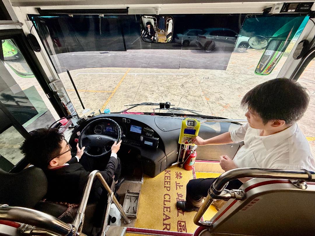 投入客運業延續「服務至上」理念,駕駛林泳宏將乘客視為社區服務的客人,無論是協助長者提重物,或面對外國旅客詢問路線皆主動協助,甚至運用翻譯工具即時解說,提升旅客便利性,行銷台中的城市形象。他分享,行駛路線常行經學區、醫療院所、商圈及觀光景點等的公車路線,曾有長者搭車時遞上蘋果,並道謝「開車辛苦了」,讓他深受感動,駕駛與「知足常樂」人生觀契合,開公車樂在工作也很有成就感。
