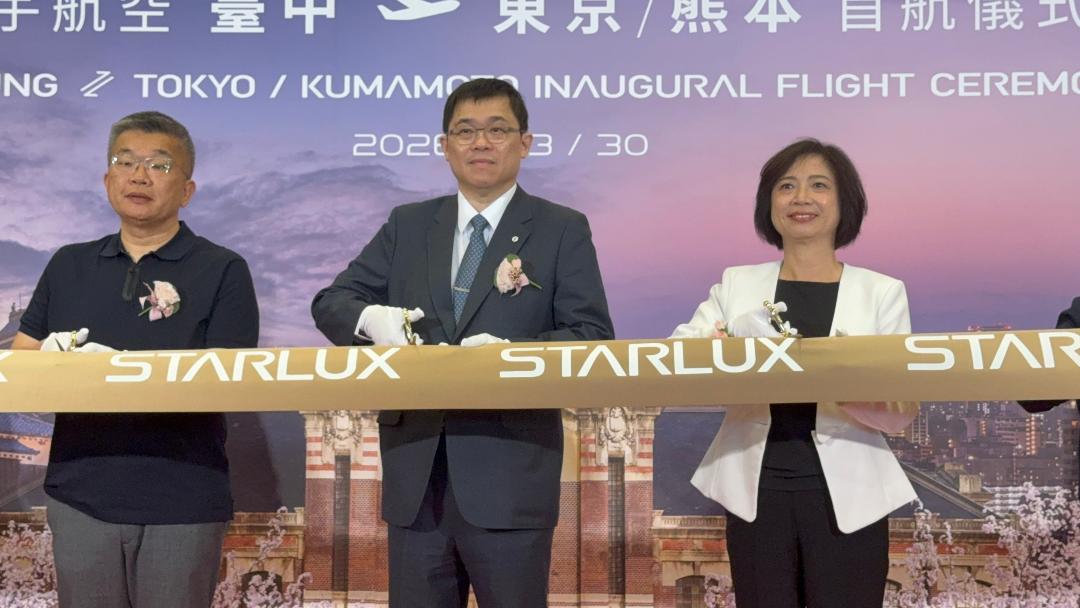 台中國際航線版圖再拓展,中部地區觀光與國際交流能量蓄勢待發!台中市政府觀光旅遊局於3月30及31日迎來航運大喜訊,包含星宇航空「台中-東京」與「台中-熊本」2條航線首航、真航空「台中-釜山」航線正式啟航以及台灣虎航同步加入營運「台中-沖繩」航線的行列,3家航空公司齊發,不僅展現航空市場對台中的高度重視,也象徵中部地區觀光與交通發展邁入嶄新里程。