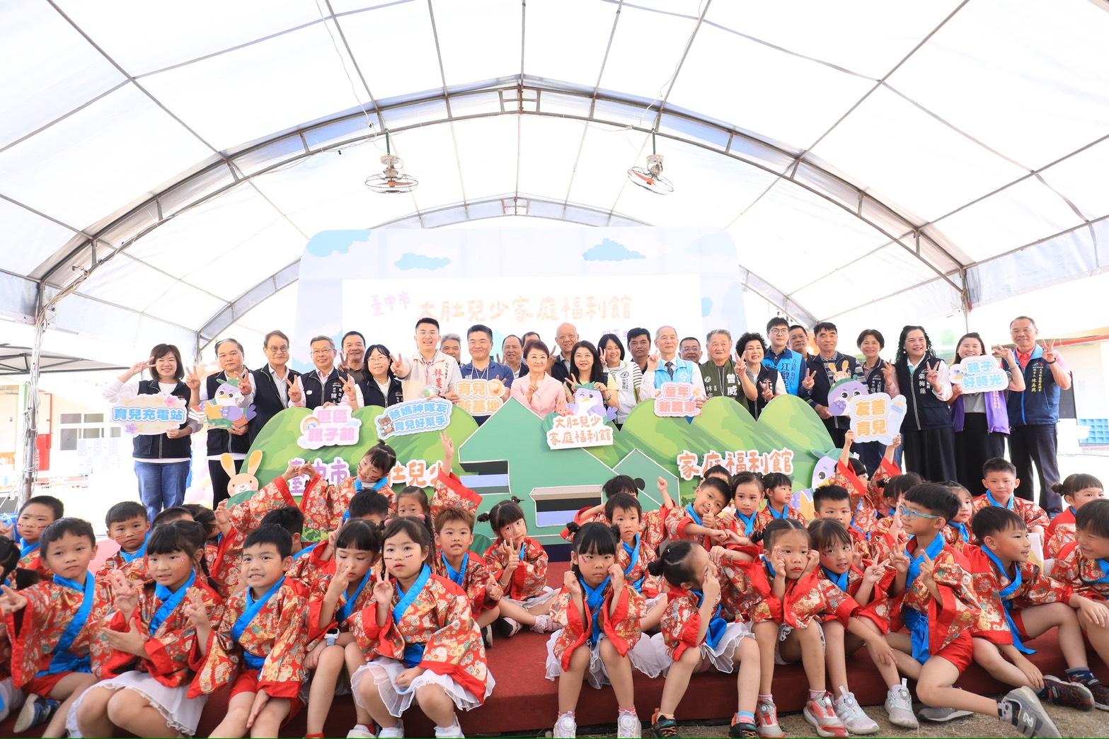 為完善台中市托育與家庭照顧服務網絡,台中市政府社會局與建設局共同興建大肚兒少家庭福利館,市長盧秀燕今(2)日主持開幕典禮,宣布第22座親子館與第49間公托正式啟用,未來周邊也將打造地下停車場與全民運動館,成為海線地區育兒、休閒與社區交流的重要據點,今日盧市長更期許「卸任之前完成60間公托」!