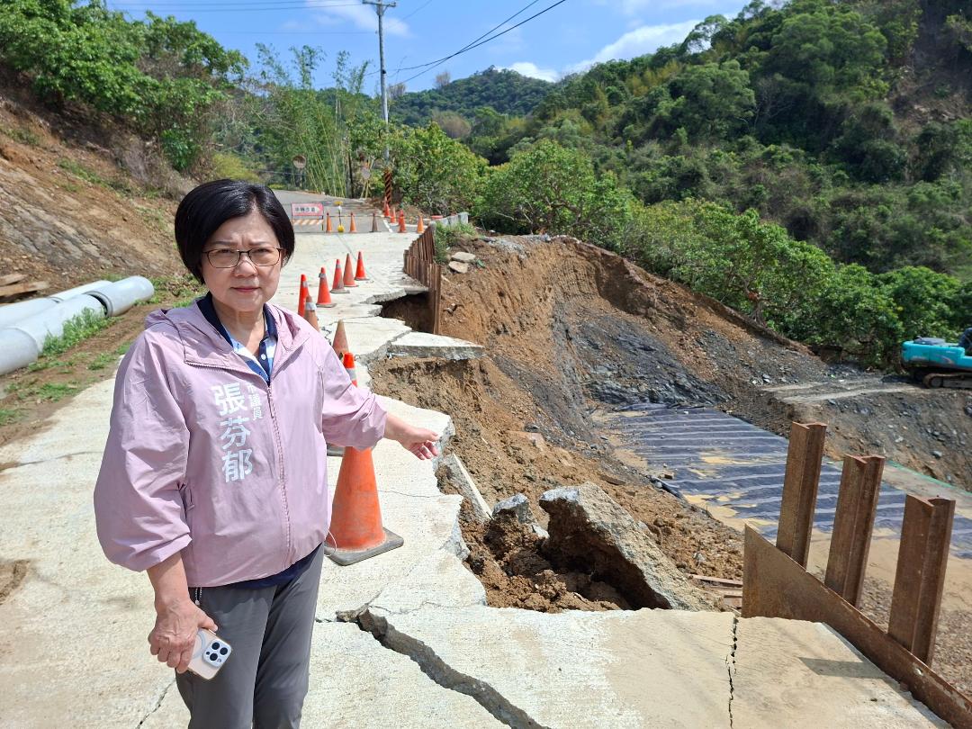 張芬郁表示,去年7月丹娜絲颱風後,積極爭取災後修復,立委何欣純和市長盧秀燕都曾到場勘查,中央核定災後復建工程款1600萬,預計5月底完工,工程還在進行中,不料,大雨沖刷把便道沖垮,居民憂心沒有便道通行,也擔心5月底若無法完工,緊接著豪雨季、颱風季節等,要求水利局儘速擬定施工方案。