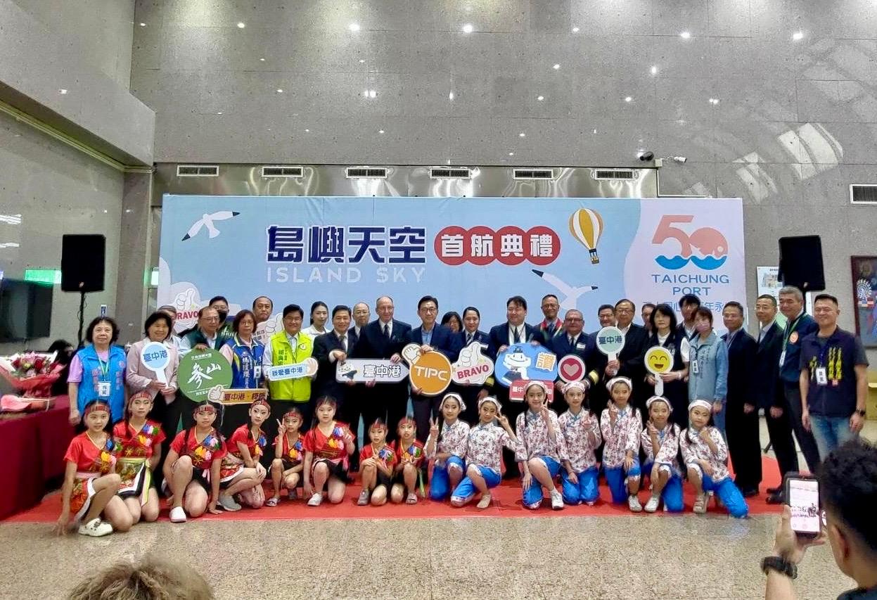 卡莉多麗旗下「島嶼天空」郵輪(ISLAND SKY) 今(7)日首航台中港!航程從香港啟德港啟航,搭載約百餘名乘客,遊客多為英國國籍,立法院副院長江啟臣、立法委員何欣純、市議員楊典忠、台中市政府觀光旅遊局蔡宗昇副局長、台中港務分公司及參山國家風景區管理處等共同齊聚於台中港旅客服務中心熱情迎接,現場並由采逸舞蹈藝術中心以充滿活力的民族舞蹈迎賓,齊心開啟台中港郵輪及海線觀光新篇章。