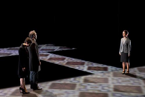 《兩韓統一》重製版不但加入全新段落,更大幅調整舞台設計,從將觀眾席一分為二的狹長舞台,轉為鏡框式舞台,運用光影雕塑場景氛圍,以配樂參與情節與角色心理建構,帶著觀眾在不同情感與情境間跳躍。