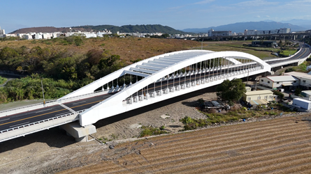 建設局長陳大田表示,此次道路工程秉持人本與生態並重理念,規劃設置1.5公尺寬人行道,打造友善通行環境;另設置雙橋梁橫跨溫寮溪,其中「甲埔一號橋」為鋼拱橋,形塑入口意象,「甲埔二號橋」則採S曲線雙鋼橋設計,兼具通行功能與景觀特色。
