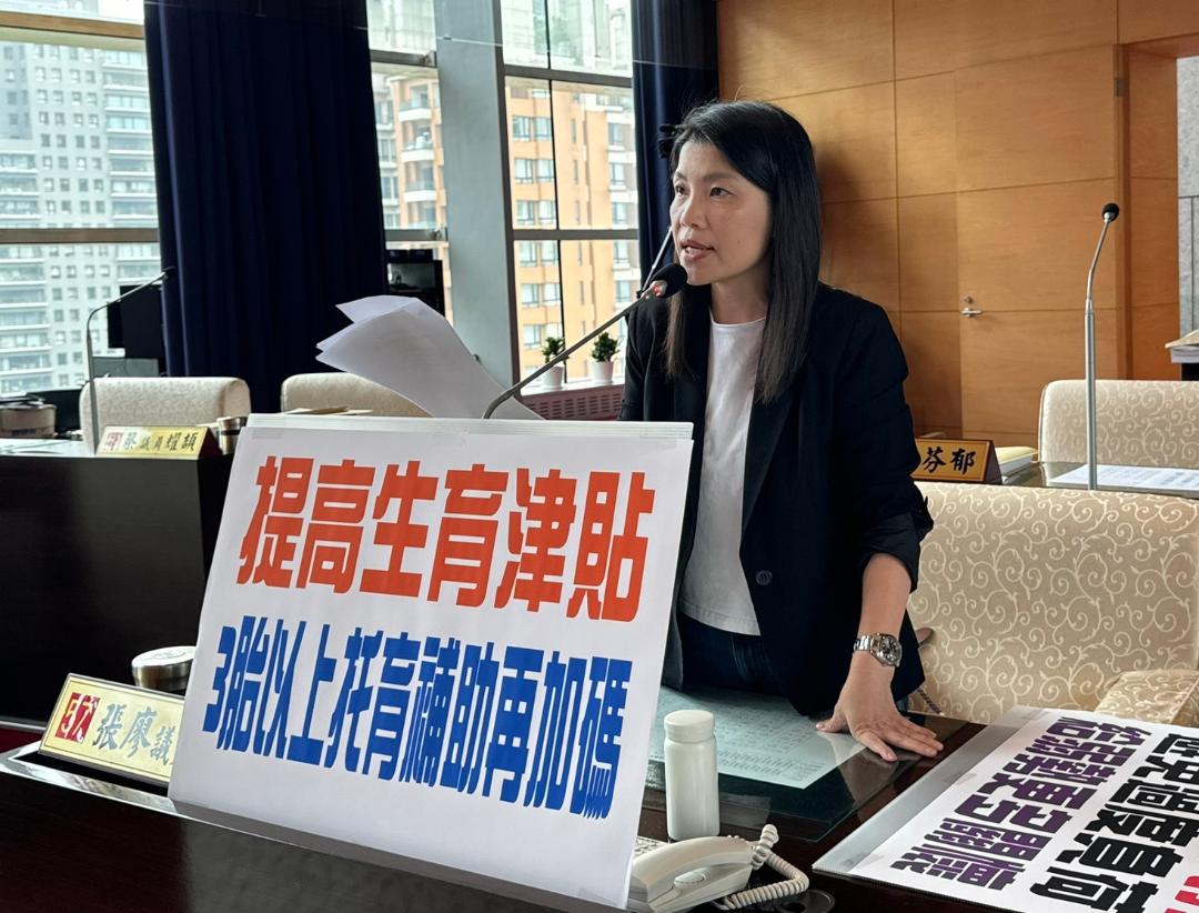 台中市議會定期大會民政業務質詢,市議員張廖乃綸關切少子化議題,要求市政府擴增臨時托育據點及量能、提高生育津貼、加碼補助3胎以上托育補助,此外,也要求社會局要補足社工人力,避免過度負荷的工作量,才能提供弱勢更好的關懷服務。