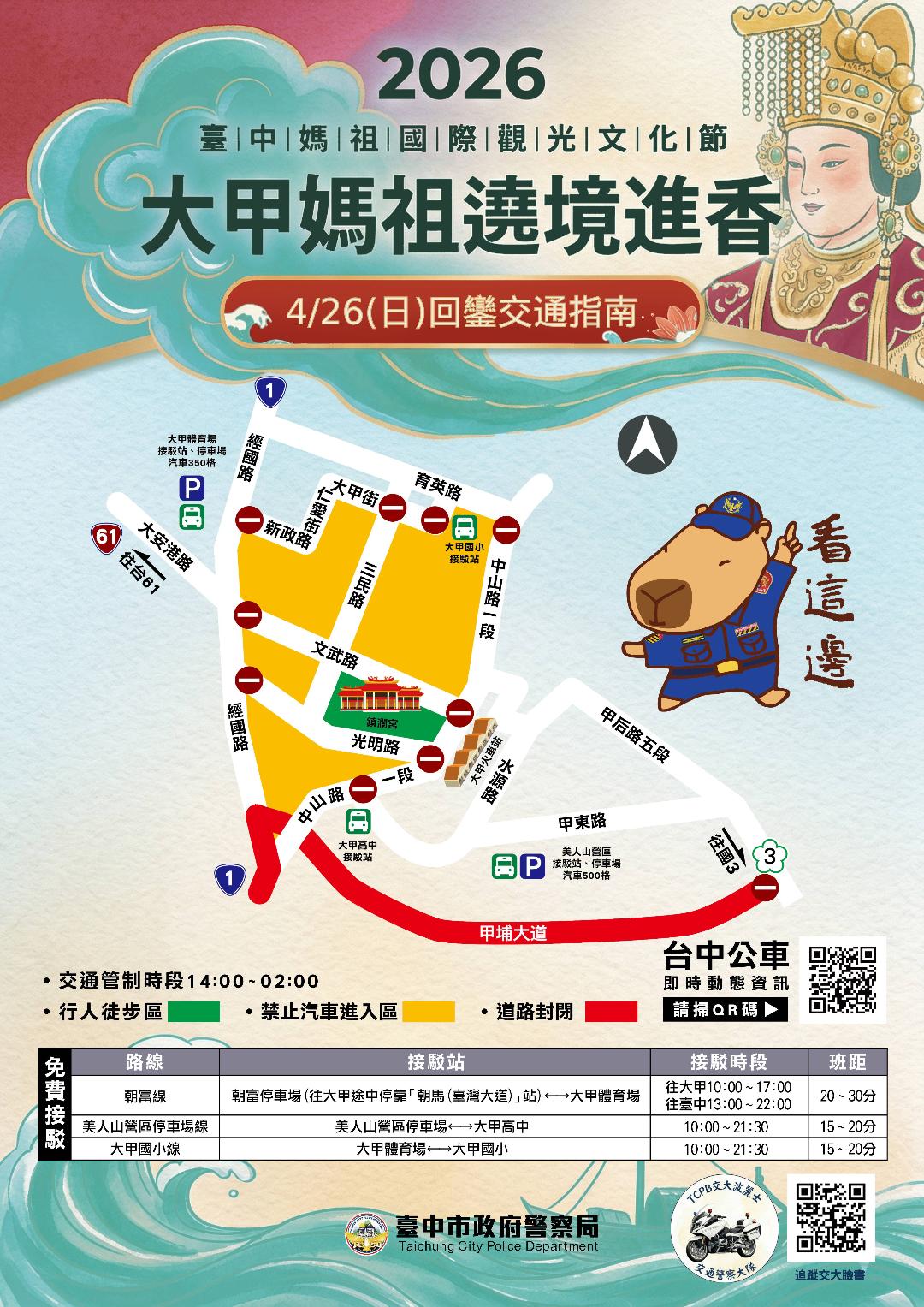 1150415「2026大甲媽祖起駕遶境進香」登場 台中市警局呼籲參加活動多利用大眾運輸